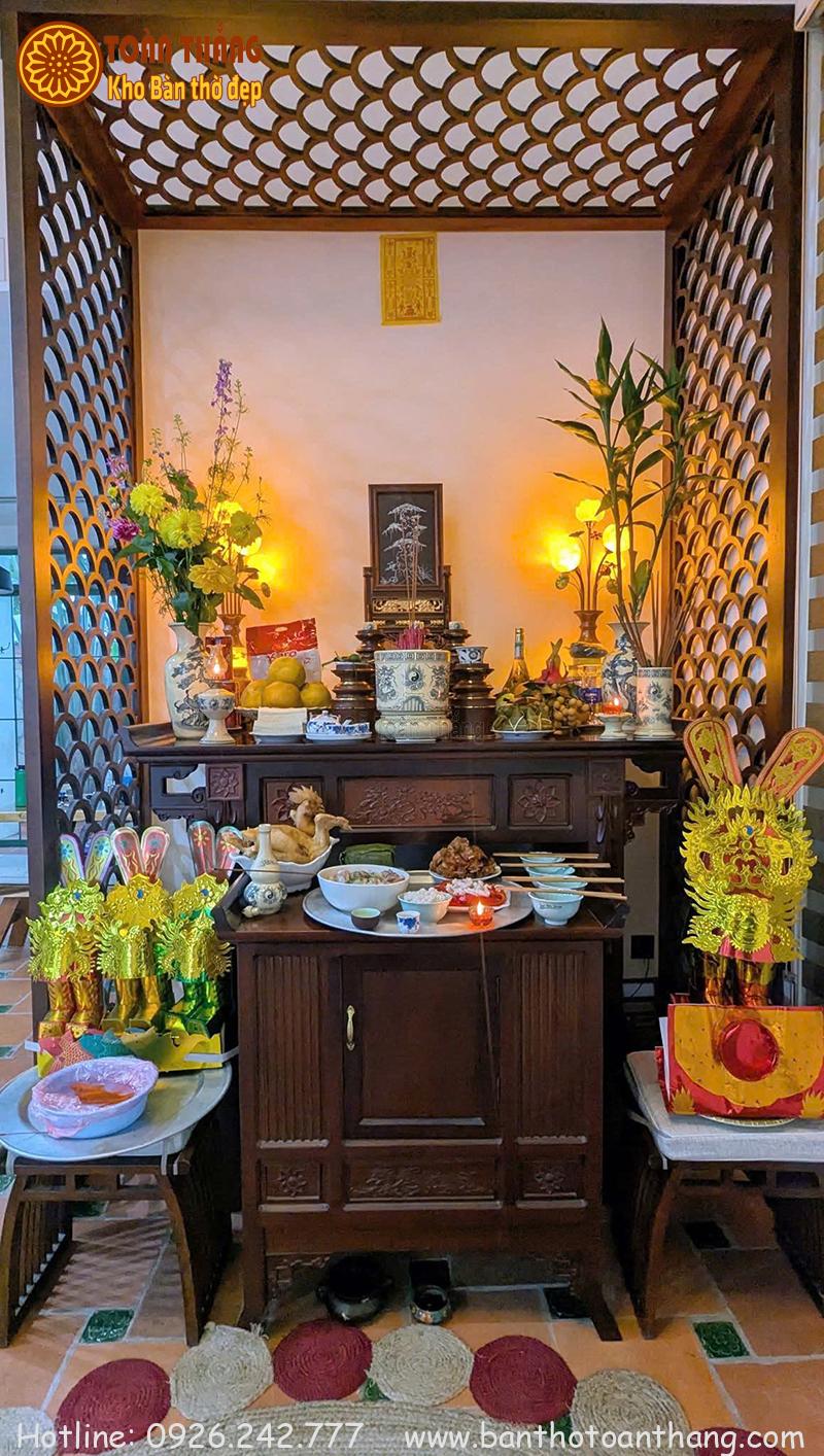Trong tín ngưỡng thờ cúng của người Việt, bàn thờ, phòng thờ… luôn là nơi thiêng liêng nhất trong ngôi nhà. Ngoài việc thể hiện sự tôn kính, hiếu thảo của con cháu đối với tổ tiên, thần linh, đây còn là nơi tạo sự ấm cúng và gắn kết các thế hệ trong gia đình.